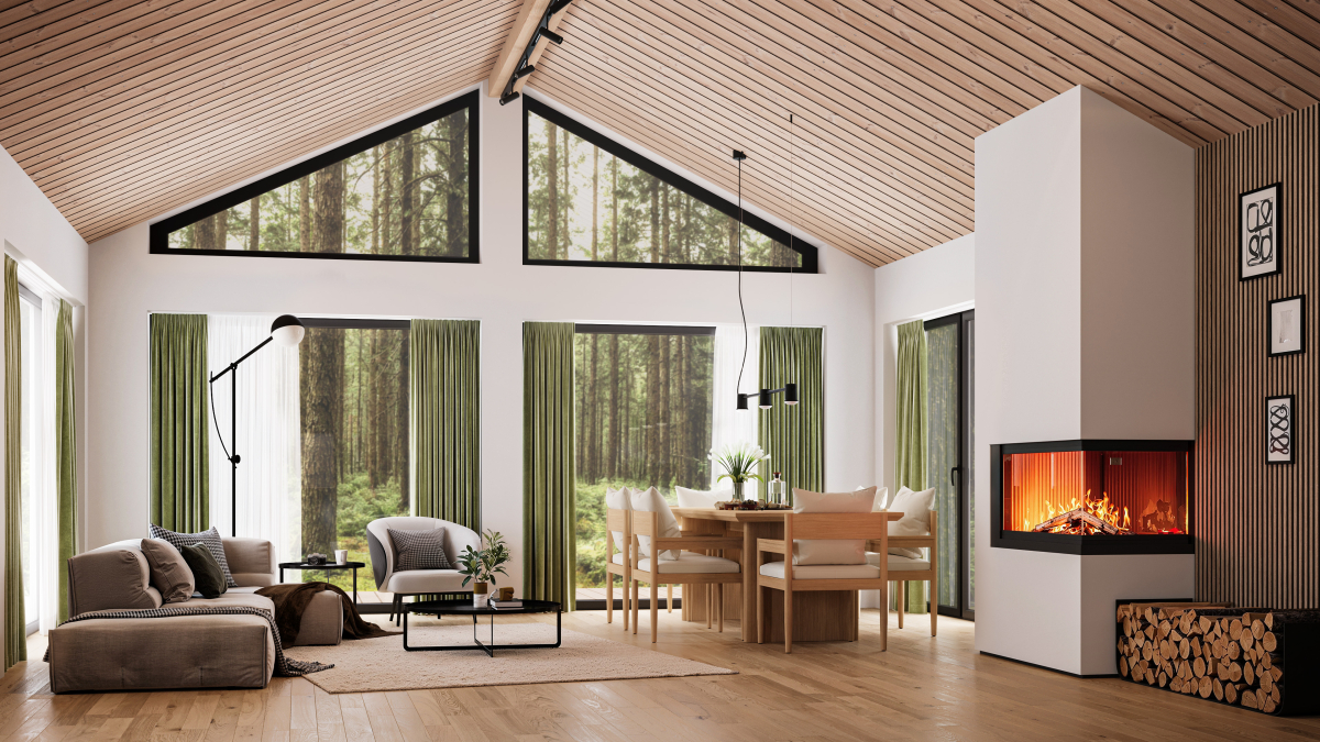 Avatud planeeringuga elutuba-köök on kõrge katuslaega. Ruumis on kolmes küljes avatäited. Võimalik paigaldada nii lükand-, voldik-, terrassiuksed või aknad.