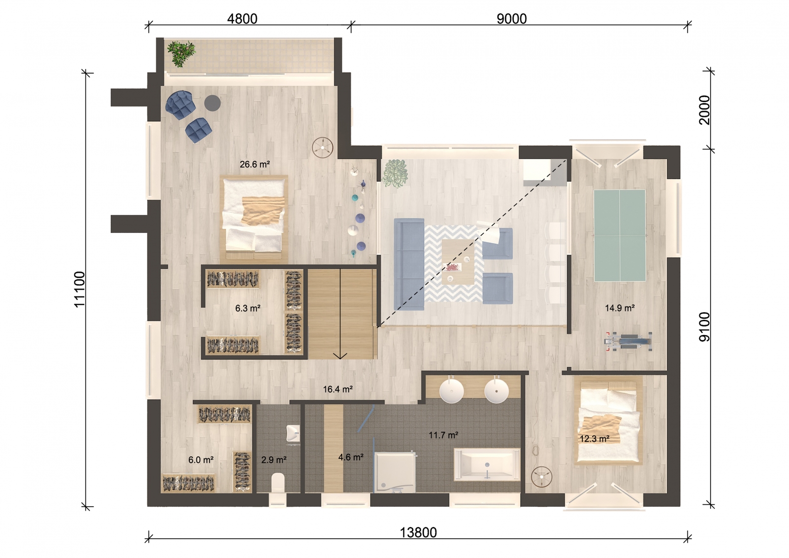 | Grabaritmõõdud (pikkus x laius) | 13800x9100 |